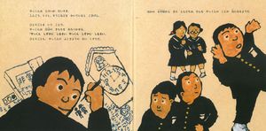 小学校卒業の時、そろって卒業生になったみんなの姿に、担任だったうちだ先生は涙を流します。やっくんはとびだして先生の手をにぎり、こう言いました。「うちだ はなこ先生 はい、おしまい。 うちだ はなこ先生 はい、おしまい。」