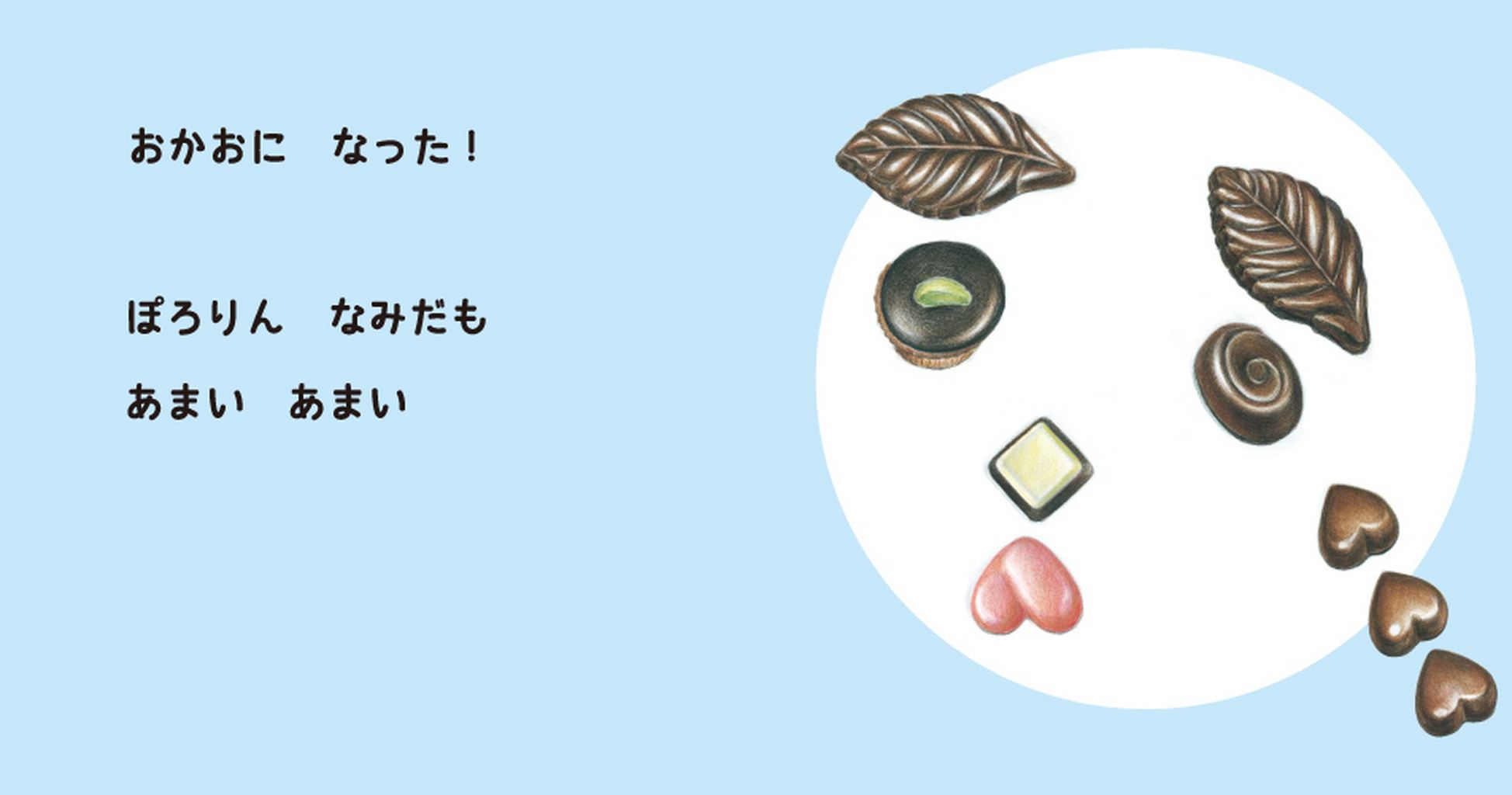 さくさくクッキー、たべようかなと思ったら、おかおになった! とろり、とろけるチョコレート、たべようかなと思ったら、おかおになった! 子どもたちの大好きなおかしが、とびきりゆかいな顔に変身する楽しい絵本です。 リズミカルな文章も心地よく、親子でいっしょに読んでください。