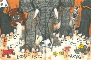 今注目の作家さんの一人、きくちちきさんが描く今作は、ゾウたちが足をふみならす震動や、鼻をならす音が、絵本から飛び出してきそうです。