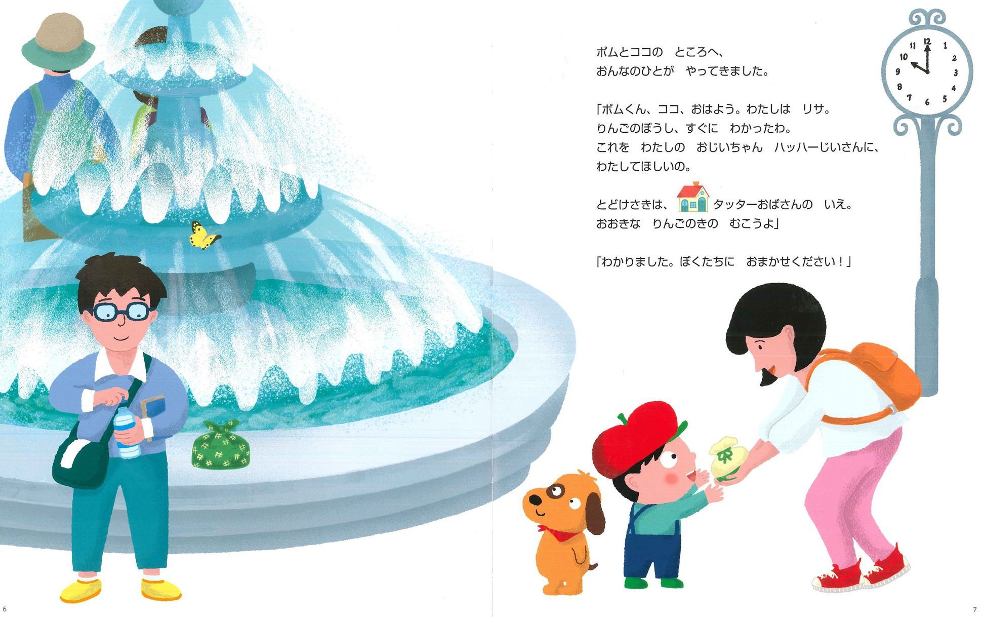 ポムと、犬のココが虫めがねで観察をしていると、1本の電話がかかってきました。 「こちらおたすけたんていポムとココです。え?それは、おこまりでしょう。・・・・・・だいじょうぶ。おとどけものは、ぼくたちにまかせてください」 ポムとココは、大切なおとどけものを持って、おじいさんのところへ出発! 途中、めいろの道をたどったり、赤いやねのおうちをさがしたり、足あとを虫めがねで追いかけたり・・・・・・。おじいさんにおとどけものをわたすため、ポムとココが奮闘します。