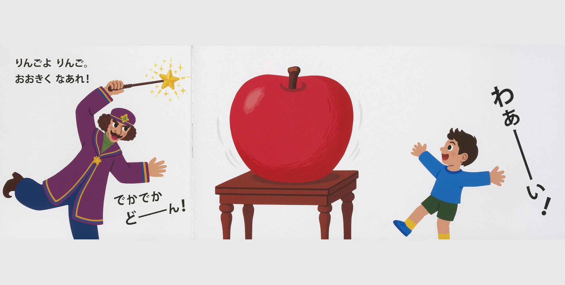 「りんごよ りんご。おおきくなあれ! でかでか どーん!」