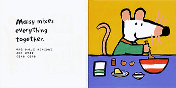 メイシーちゃんがきょう作るおやつは、しょうがいりビスケット。ひとつひとつ材料を用意して、ボールにいれて、ぐるぐる混ぜて?。