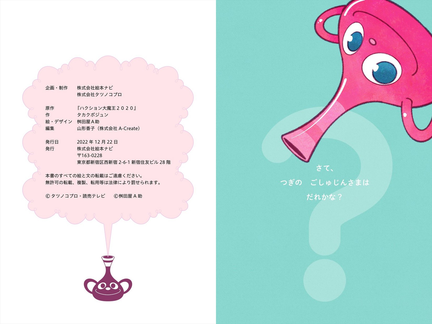 【絵本ナビ独占配信】シリーズ「ハクションだいまおう とびだせ!アクビとプゥータ」の第2弾