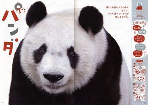 とはいえ、B4(開くと B3)というビッグサイズの誌面を使っても、全身が収まりきらない動物がほとんどです。では、からだのどこを切り取って見せるか?生き物と向きあったときにまず、わたしたちは自然と相手の「目」を見ます。そこで、目を中心とした顔を、誌面に入るだけ入れました(全身すっぽり収まった動物もいます)。 動物園の飼育の方々の協力のもと、できるだけ鮮明な写真を撮影。動物の輪郭を、ひげ1本1本まで切り抜いて、白地に置いてみると・・・。パンダが、トラが、キリンが、オオアリクイが、すぐ目の前にいるかのよう。息づかいまで聞こえてきそうです。名前(動物園でつけられた愛称)も紹介して、まさしくその個体のポートレートにしました。