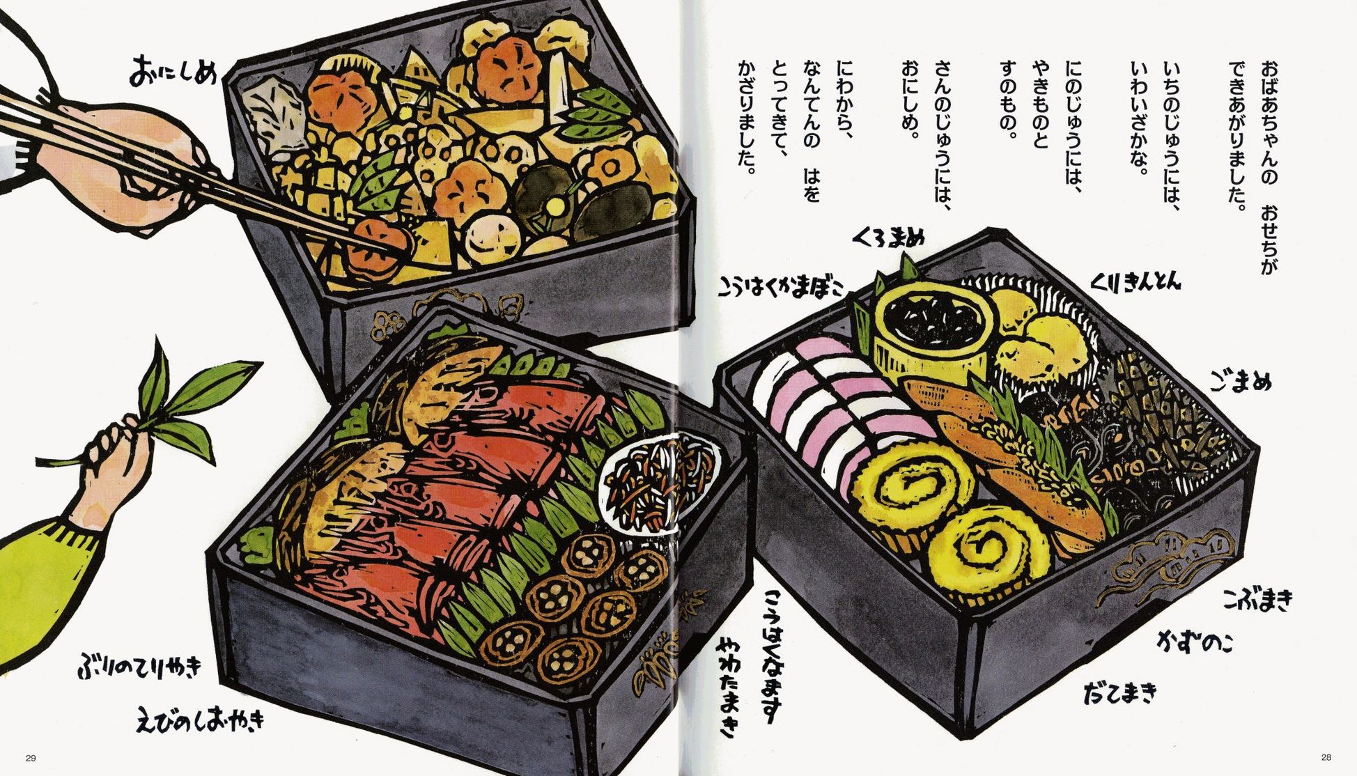 きりちゃんは、初めて、おばあちゃんのおせち作りを手伝うことになりました。商店街で買い出しをしたあと、料理の手順を教わり、おせちのいわれを聞いて……。家族で迎える昔ながらのお正月の楽しさ、あたたかさを、温もりある版画で伝えます。巻末には、料理研究家・堀江ひろ子さんによる、おせち料理の由来の解説付き。