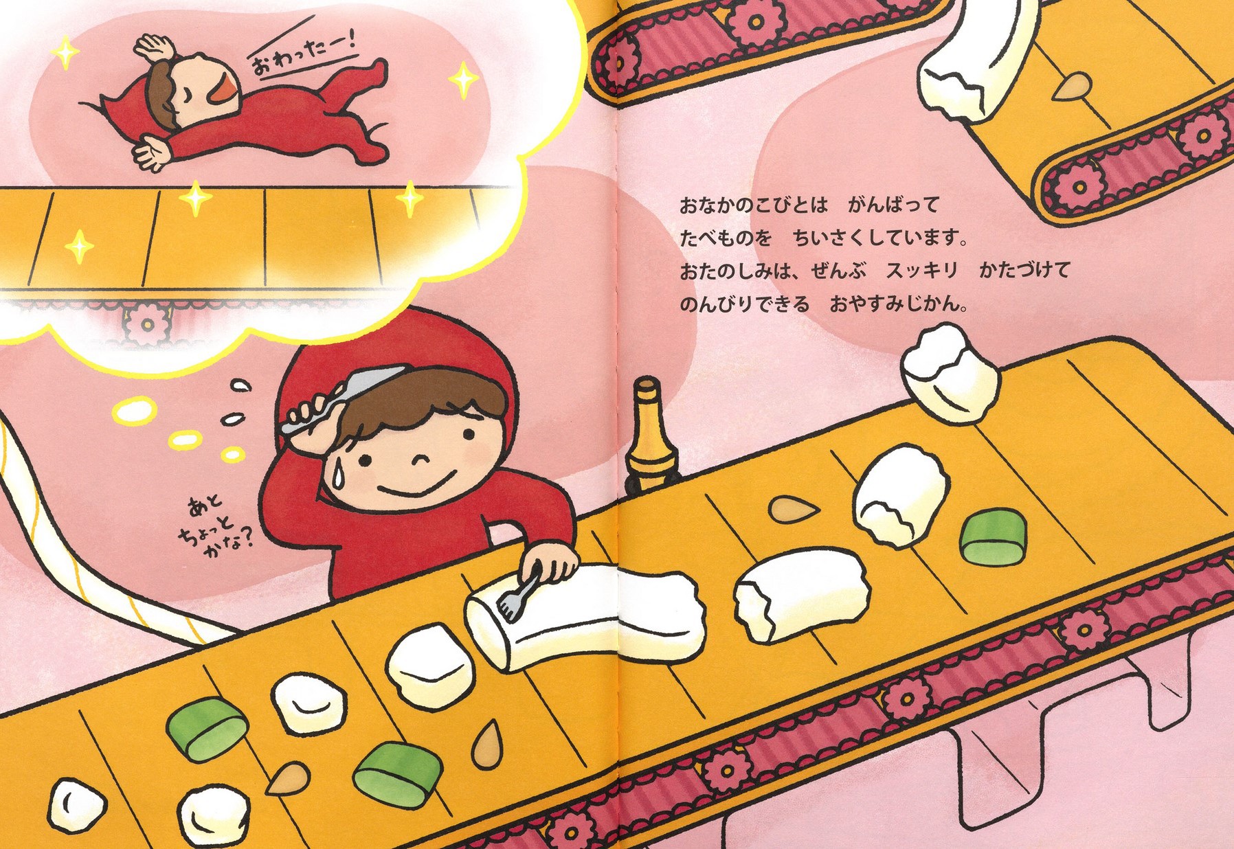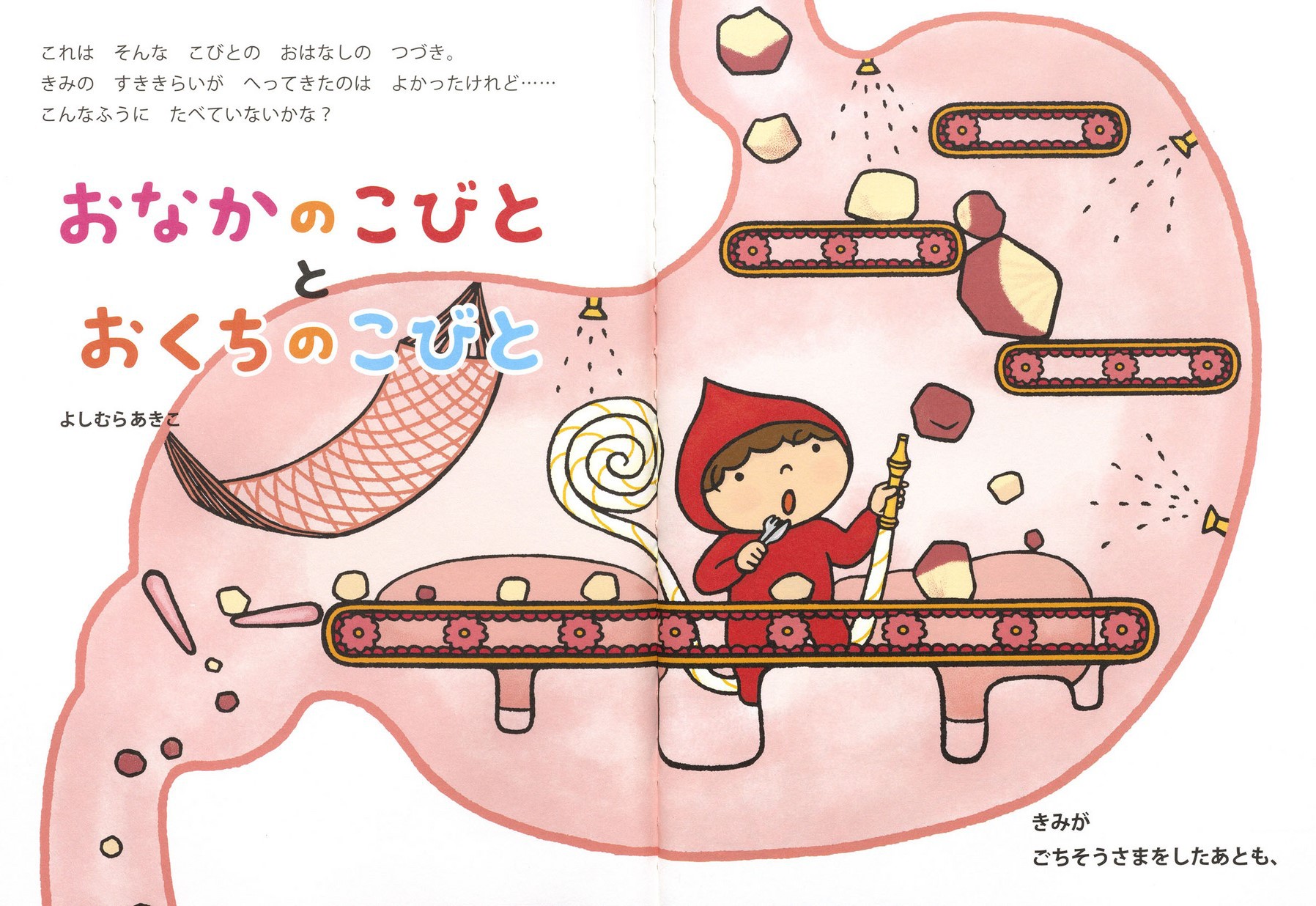 ロングセラー『おなかのこびと』待望の続刊!おなかのこびとの仲間、おくちのこびとが登場!ダラダラ食べていると、おなかもおくちもタイヘンなんです!