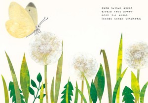 やさしい風が吹いてきて、ひらりと散った桜の花びら。その花びらがそっと触れたのは葉っぱの上のサナギです。サナギはやがてチョウとなり、たんぽぽの綿毛にすっとおります。雨が触れたのは、カエルの頭。セミの鳴き声は遠く丘まで飛んでいき、ふくろうの小さなまばたきは……。