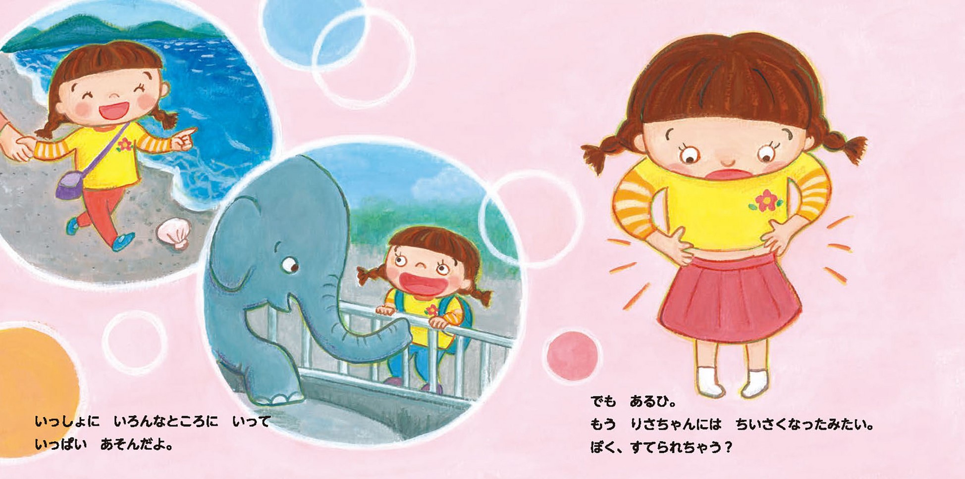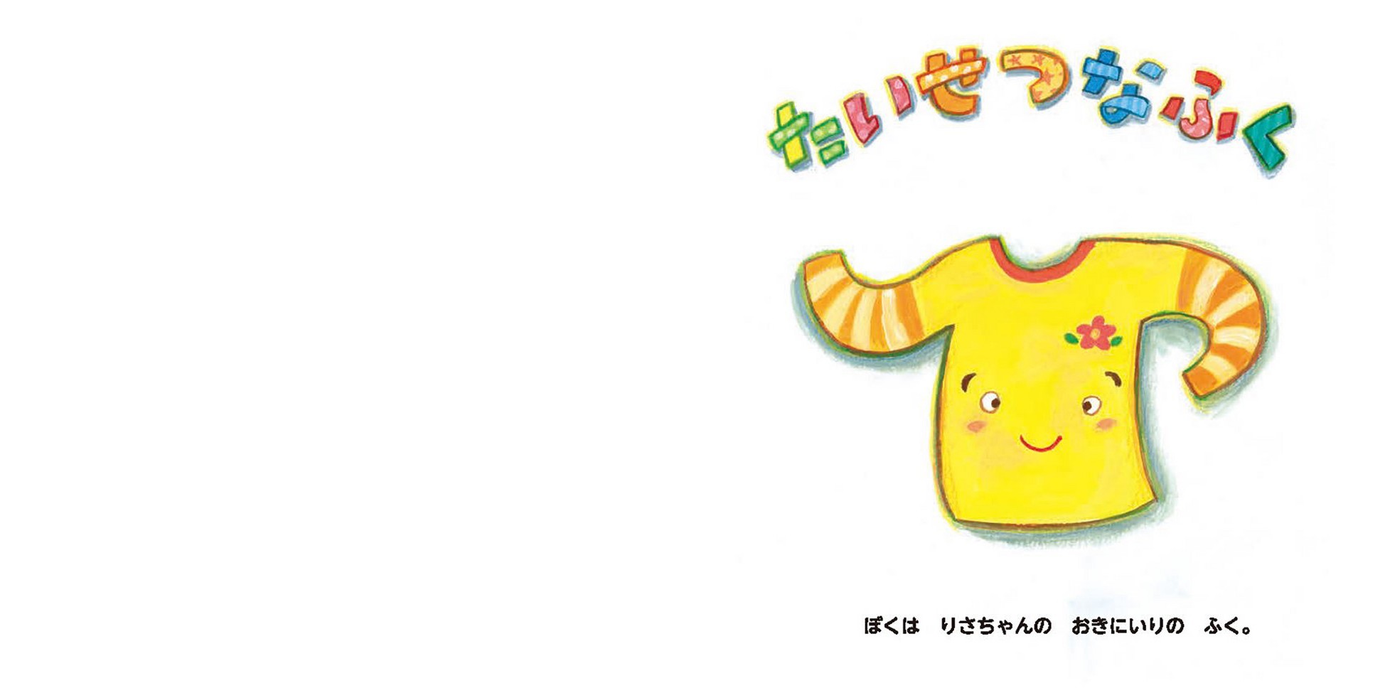 「ぼくはりさちゃんのおきにいりのふく。」 そう話すのは、黄色い体にオレンジのしましまが入った、かわいい長袖くん。 大好きなリサちゃんと、たくさんの思い出を作りましたが、もうリサちゃんには小さくなってしまったみたい。
