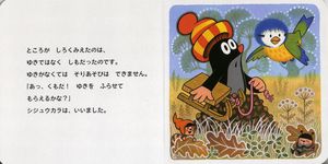 冬がきて外は一面真っ白。そりをひっぱりだしたもぐらくんでしたが、雪だと思ったのは霜でした。雪をふらせて!と、 もぐらくくんと友だちのシジュウカラは雲に頼みます。水をあげるとごくごく飲んで、雲はフーッときれいな雪をふいてくれました。 大喜びのふたりは、そりを走らせおおはしゃぎです。かわいいチェコの人気者、もぐらくんの小型ボードブックです。