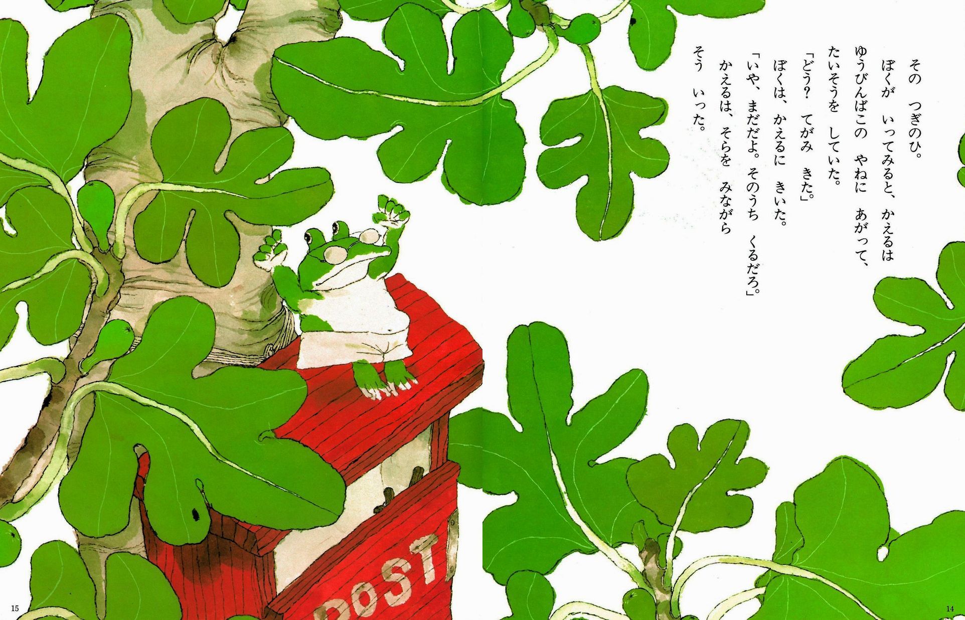 かえるはいちじくのはっぱに「てがみを ください」と一枚一枚書いていたなんて・・・・ いじらしい
