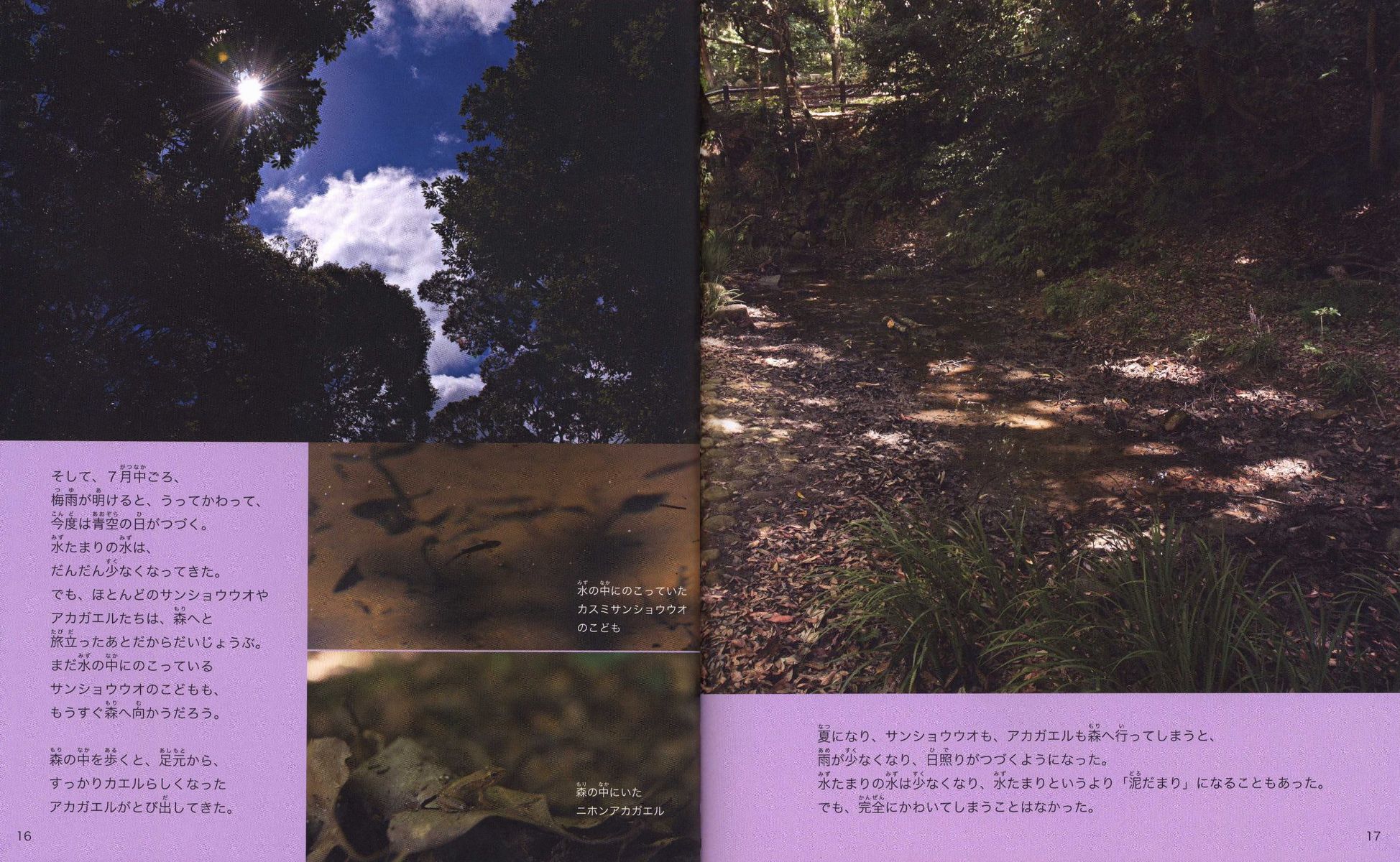 福岡県北九州市の山に実際にある「消えない水たまり」を取材し、そこに住む生き物たちの生活や、地形の特徴、季節による変化、人との関り…などをまとめた写真絵本。