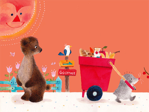 おおでゆかこさん作のオリジナル絵本。のんびりもののもぐらのもぐと、くいしんぼうのこぐまのぐー。二匹の食べ物をめぐるやりとりを、楽しい言葉で繰り広げます。二匹の掛け合いと擬音が主なので、小さいお子さまへの読み聞かせにぴったりです。ぜひお子さまと一緒に読んであげてください。「第1回PictBox絵本コンテスト」優秀賞。
