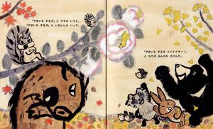 大らかでゆったりとした空気感に、ぴりっと効いたユーモアセンス。 独特の雰囲気がどれも魅力的なおくはらゆめさんの絵本。 今度の新刊はやる気いっぱい! 森は落ち葉だらけで、畑はお芋だらけ。 「こうなったら しょうがない」「やきいもするぞ エイエイオー!」 動物たちは一致団結、みんな大はりきりなのです。 でもよく見るとキャラクターは個性的、それぞれの表情の変化も見逃せません。 特に、焼き上がったお芋を思い思いに頬張る至福の瞬間! その輪の中に、いつの間にか混ざっている“あの方”の意外なほどの可愛さにも注目です。 そしておいもを食べれば、当然出るのは・・・? 「こうなったらしょうがない」 まだまだみんなははりきるのです。 昔話の様な、どこか懐かしくて美しい秋の景色を背景に、ばかばかしい大会を繰り広げる動物たちと一緒に、大笑いしながら参加してみてくださいね。それにしても焼き芋、美味しそう・・・。