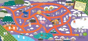 迷路の途中には、お正月の風景がちりばめられ、細部まで何回も楽しめる美しい迷路の絵本です。