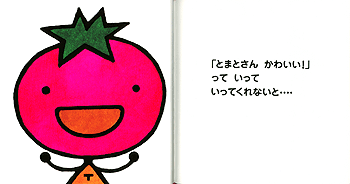 主人公と読者が直接対話するユニークな新スタイルの絵本。小さな女の子に擬人化されたトマトが読者を驚かせます。