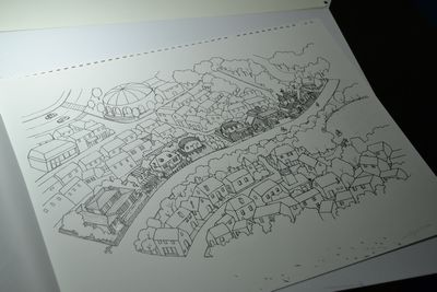 あれこれ想像して、お家の外見も描いて、これをつなげるとチュウチュウ通りが完成します。