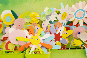 色紙やストロー、シールなどいろんな材料を使って、独創的なお花をつくるワークショップです。