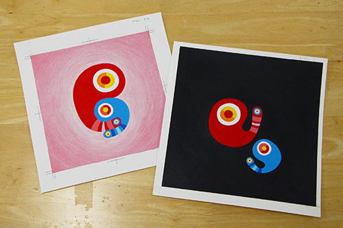 開:実は、市原さんの絵を見たときから、「これは、あかちゃんが好きな絵だぞ」という印象を持っていました。市原さんがおっしゃったような、疑似的な目のようなデザインは、すごく目を引くんですよ。しかもバックが黒いでしょう。黒の中に、赤と青の2つ。この視覚パターンを考えられたのがすごいと思いました。