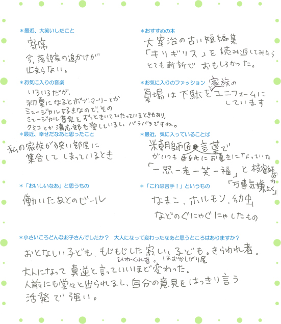 ───最後にあおきひろえさんのひみつを手書きコメントで大公開!