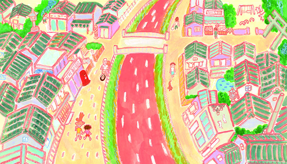 あおき:この絵本で一番気に入っているのは、セリフのない俯瞰で見た町の絵です。