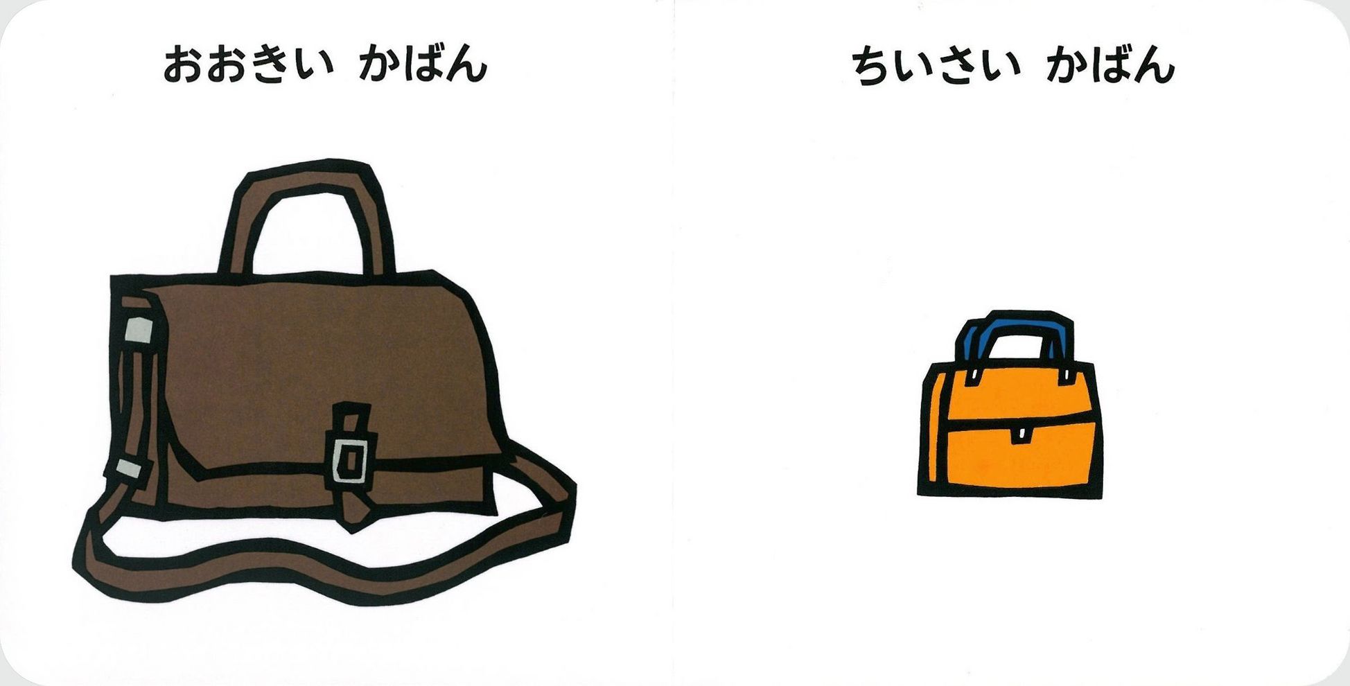 見開き展開で、お父さんと子どもの洋服や体の大きさをくらべて、大小を認識します。