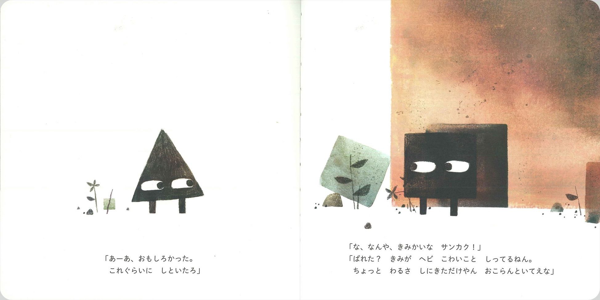 あるひ さんかくさん どっか いきよる 「シカクに わるさ しにいくねん」 「みててみ、おもしろいことに なるで……」 サンカクさんとシカクさん、これぞあたらしい友情のかたち?