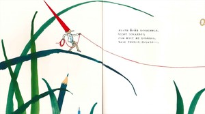 ことさらおどろくような展開があるわけでも、ギラギラとハデな配色のページがあるわけでもないのに、スーッとどこまでものびていく細い赤と、ツンととがっておおきく身をのばす三角形の赤が、なぜだかいつまでも心にのこります。