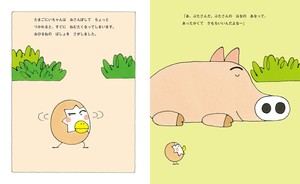 散歩中に出会ったブタさんの鼻の穴の中で休憩していたたまごにいちゃん。目が覚めたら、見たこともない場所です。家に帰ろうと思ってもどこへ向かえばいいかわかりません。…ぼく、まいごになっちゃったの? たまごにいちゃん大ピンチ! ところが偶然出会ったのは近くに住んでたはずの仲間たち。どうしてここに? と思いながらも、あれよあれよと帰路は想像を絶するニワトリ飛行に! これには、たまごにいちゃんのたまごの殻もふっ飛びそうです。ちょっぴりスケールの大きなたまごにいちゃんのお話を親子でお楽しみください。いつか羽ばたく日のために…。それにしてもブタさんの移動距離にはびっくりですね。