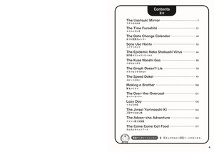◇うそつきかがみ ◇タイムふろしき ◇日づけ変更カレンダー ◇ソノウソホント ◇流行性ネコシャクシビールス ◇くせなおしガス ◇グラフはうそつかない ◇スピードどけい ◇弟をつくろう ◇オーバーオーバー ◇ぐうたらの日 ◇人生やりなおし機 ◇アドベン茶で大冒険 ◇カムカムキャットフード