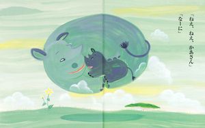 ほっこりといい気分に浸れるナンセンス絵本です。サイがうっとり一輪の花にみとれてしまうと、体が浮いてしまって、お母さんに甘えていたころの夢をみるでしょう。ほかに、ワニが、おばけが、ヘビが・・・。