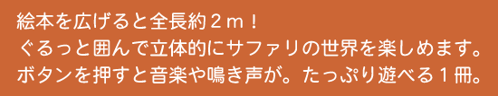 | ポカポカフレンズの音としかけのなが〜いえほん サファリ出版社: 三起商行(ミキハウス) 税込価格: ¥1,870 ご購入いただけません