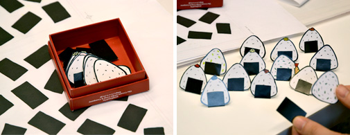 ▲カッターでカットした“おにぎり”と“のり”は、こんな風に並べて遊ぶこともできるんです。