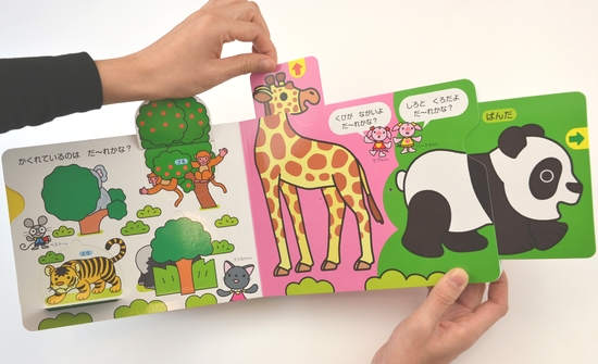 また、高品質と合わせてこだわっている事がもう一つ。毎回「他社にはない絵本作り」を目指して新刊制作に取り組んでいます!今回の新刊でも、業界初の機能搭載や(上記回答参照)、子ども達が聞いた事がないような「キリン」や「パンダ」の鳴き声を入れる事で、遊んだときの驚きと思わず何度も繰り返して音を聞いてしまうようなしかけ作りを目指しました。