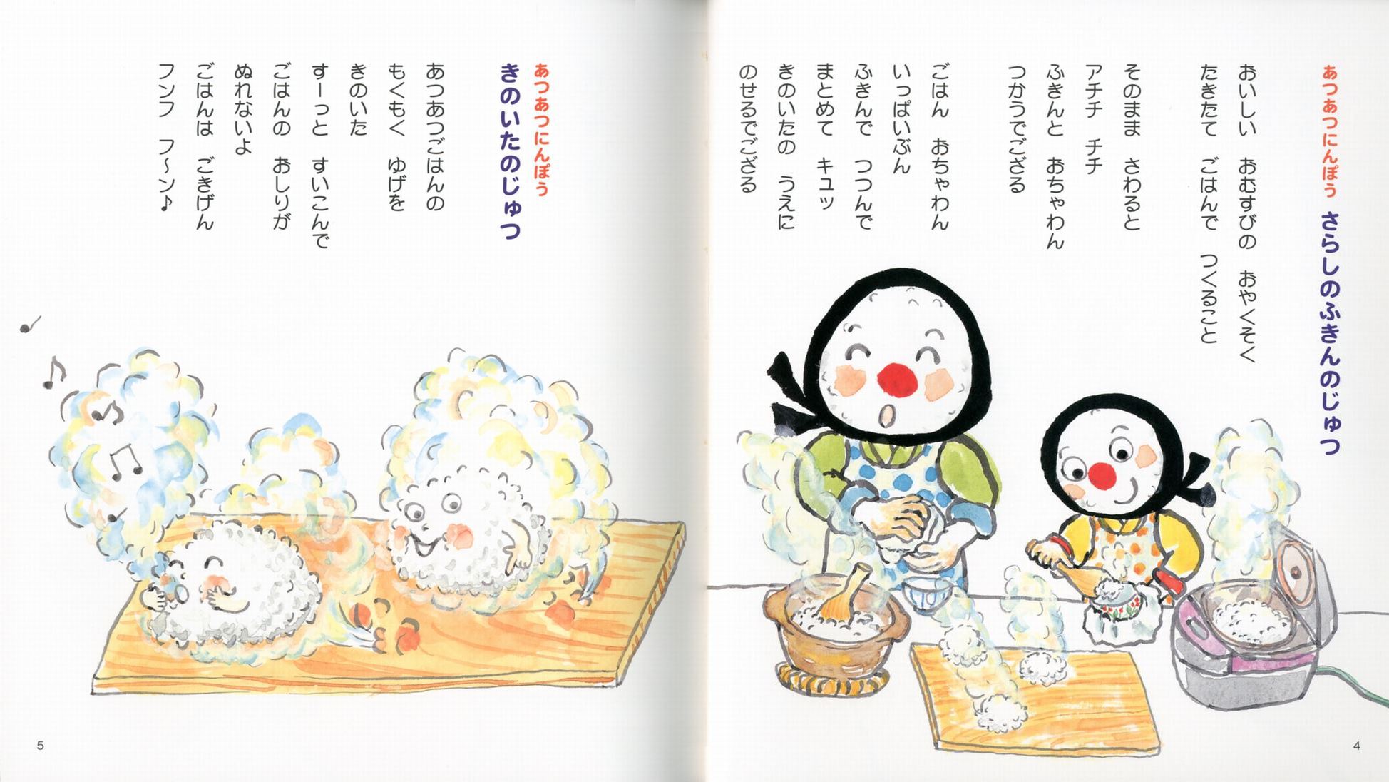 炊きたてのごはんや熱々のごはんの冷まし方、塩のつけ方などが載っていて、絵本というよりもおむすびのレシピ本といった印象を受けました。