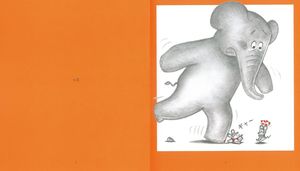 小石につまずいたぞうさんが「おっとっとっと」、 思わず小さなねずみくんのしっぽをふんでしまった! 「ギャ〜」 これは痛そうです。ぞうさん、ねずみくんが小さくて見えなかったんだって。 だけど、ねずみくんはぞうさんの心配。「あし、だいじょうぶ?」 さらに「ぼくがちいさくて、めだたないからいけないんだ」と、ねずみくんはしょんぼり。