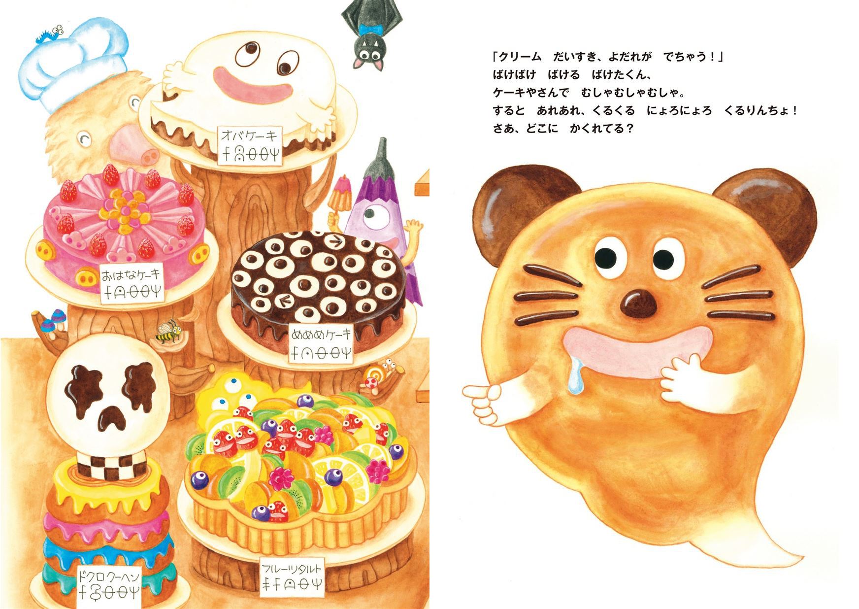 ばけたくん、きょうは おばけまち しょうてんがいで つまみぐいです。 パンやさん、ケーキやさん、やおやさん…。いろいろなお店でパクパク。でも、たべるとばけるばけたくん、今回もやっぱりばけちゃった! しかも、お店のなかにまぎれてしまったから、さあ、たいへん! ばけたくん、どこにいるかわかるかな!? 人気の「ばけたくん」シリーズから、お店の中にかくれたばけたくんをさがす絵本が登場! ひとりでも、親子でも、家族でも、友だち同士でも愉しめます!