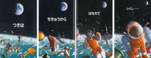 落ちてゆく絵本には、1ページ目と同じ、月の浮かぶ宇宙の光景が!