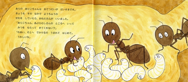 アリのありこちゃんは、お姉さん達にアブラムシのみつをもらってくるように頼まれて大はりきり。