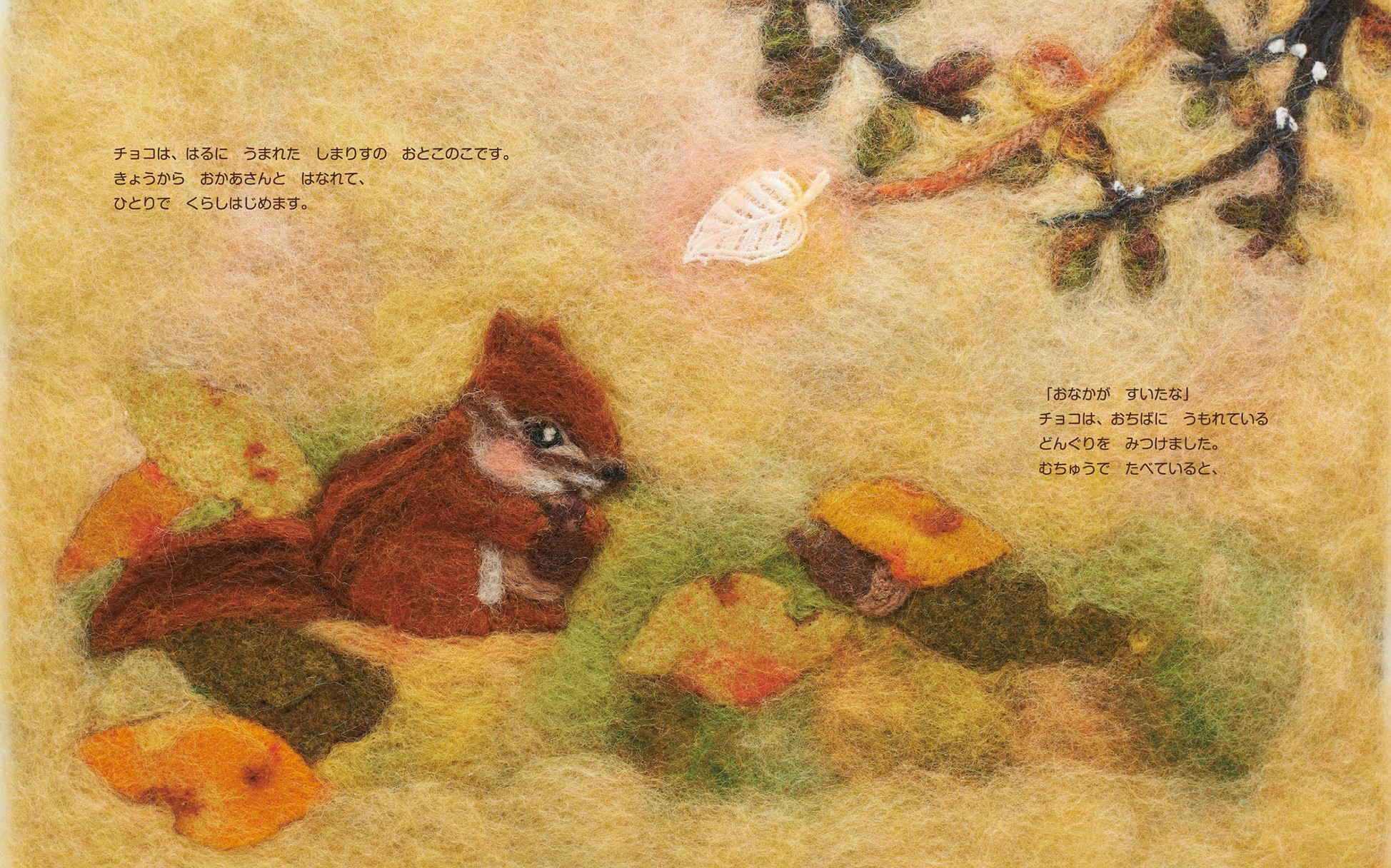 シマリスのチョコは、春に生まれたさびしがりやの男の子。ちょっとおねえさんのユキウサギ、ネネがお友だちになってくれました。秋の間、楽しく遊んだ二人でしたが、チョコの冬眠の日が近づいてきました……。友だちと別れること、まためぐりあうこと。季節を通してお互いを信じあう、あたたかな友情を、質感ゆたかな羊毛フェルトで絵本にしました。風の中、ふたりの春が始まります