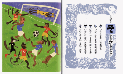 あいうえ「お」のつく、おおかみくんが、こうもりとけんだましたり もぐらとまりつきしたり、ぶたとボウリングしたり…。 五十音の各行が詩の中にかくれています。 絵の中にも各行から始まる言葉がいっぱい。 言葉と絵で遊びながら「あいうえお」から「ん」までのひらがなが楽しく 覚えられます。 巻末には、新沢としひこ作曲の「あいうえおおかみ」の楽譜付き。