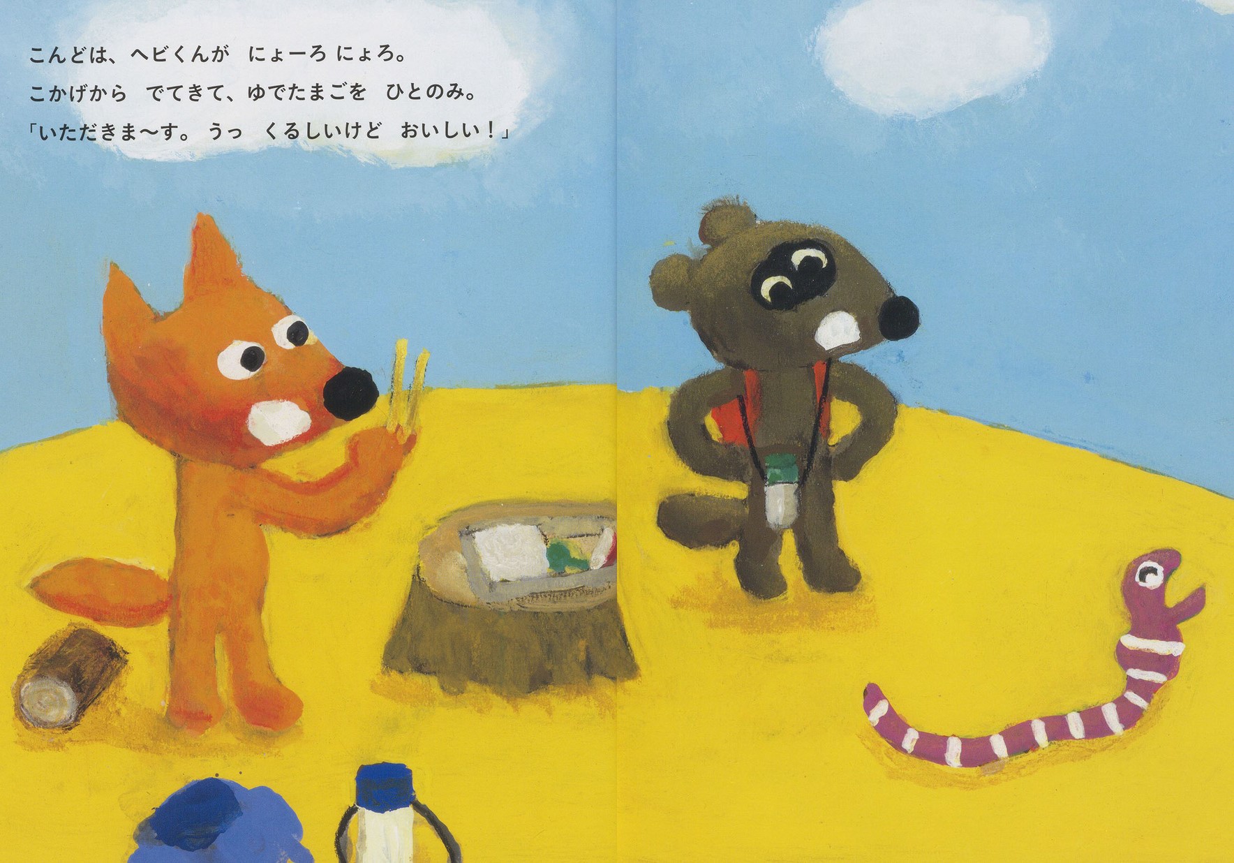きつねくんがお弁当をとりだすと、トンビが空から『ひゅーるひゅる』とやってきて、エビフライをくわえて飛んでいっちゃった?いろんな動物たちが『ひゅーるひゅる』と出てきては、きつねくんのお弁当を…!?ピクニックの季節にぴったり!読み聞かせにもおススメの創作絵本です。