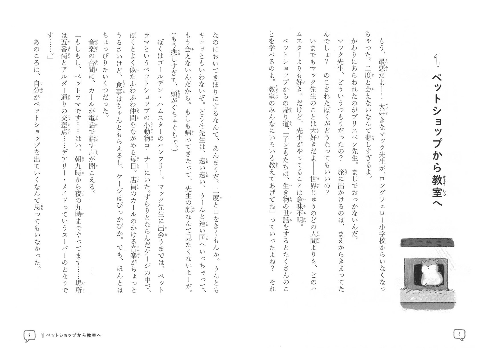 ロングフェロー小学校の26番教室で飼われることになったハムスターのハンフリー。週末は、生徒たちの家でめんどうをみてもらいます。好奇心たっぷりで少しおっちょこちょい、正義感の強いハンフリーが、先生や生徒一人一人の個性や困りごとを知り、解決にむけてさりげなく手助けします。 あるとき、声が大きい子の家にいったら、テレビがつけっぱなし。ハンフリーはケージを出て、テレビの電源をぬいてしまいます。すると、家族はテレビがなくても楽しく過ごせることに気がついて……。 生徒や先生たちの成長をえがく、心あたたまる物語です。