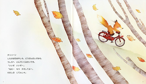 こぎつねのクンは、とこちゃんのぴっかぴかの自転車に乗せてもらいました。山の家へ帰ったクンは、自分の自転車が欲しいと、お母さんを困らせます。翌朝、クンが目をさますと1台の自転車がありました。クンは有頂天で、自転車に乗ってとこちゃんの所に遊びに行きます。ところが、その自転車は水たまりを飛び越し、石をよけ、坂道はゆっくり走る不思議な自転車でした…。