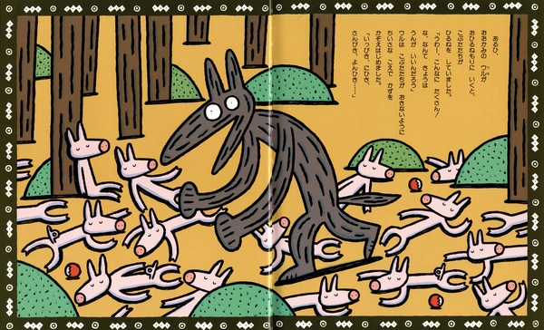 おおかみのウルは森でお昼寝中のたくさんのこぶたを見つけてご満悦。こんなに1人で食べられない。そこで友達を誘いに行くけど…。