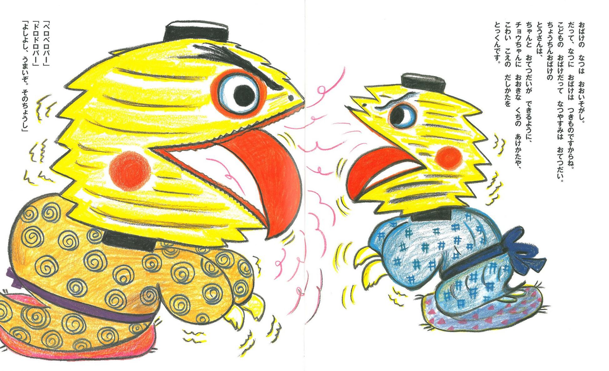 ちょうちんおばけのチョウちゃんは、夏休みにおじいちゃんのいる、むこうやまのおばけでらへ遊びに行くことに。おにぎり持って、スイカも持って、さあ出発! すると、おばけでらでは、おばけのなつまつりの真っ最中。ドロロン、ドロロン、ドロロンロン。ドロンおんどにあわせて、みんな楽しく朝までいっぱい踊ります!