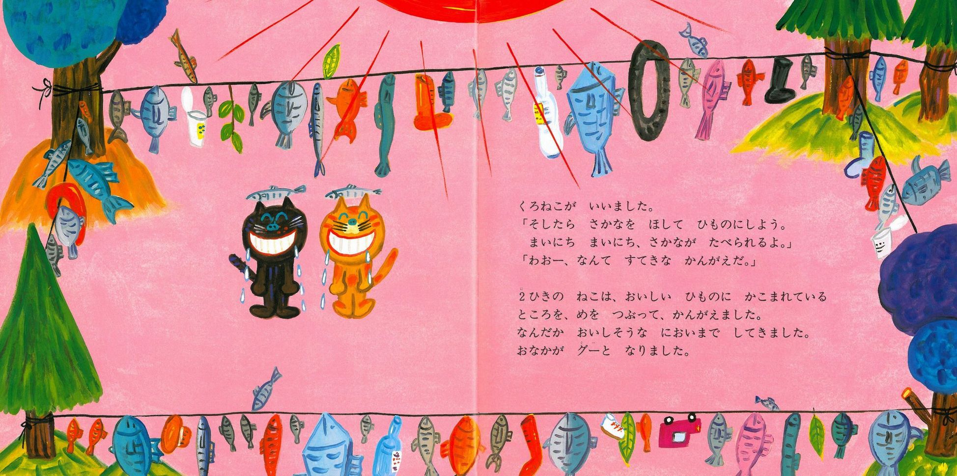 はらぺこのネコたちが、魚つりに行くネズミを発見。「もしネズミが魚を3びきつったら…」2匹の皮算用が始まります。はたして今日の晩ごはんは、ネズミ1ぴきに、魚何びき?