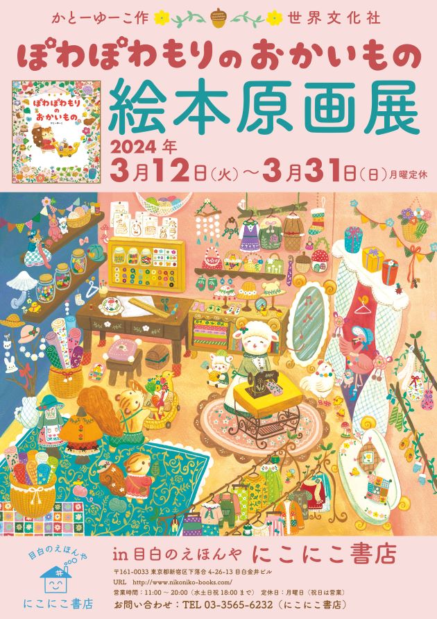 昨年9月に刊行した『ぽわぽわもりのおかいもの』(かとーゆーこ/作)、原画展の一区切りです。