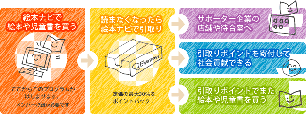 絵本ナビでご購入いただいた絵本を、絵本ナビが引取りポイントバックします。