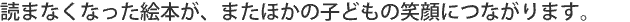 さらに、「いらなくなった絵本だから、寄付しよう」と考えていただけるのなら、皆さんのちょっとした心の満足も得られることでしょう。
