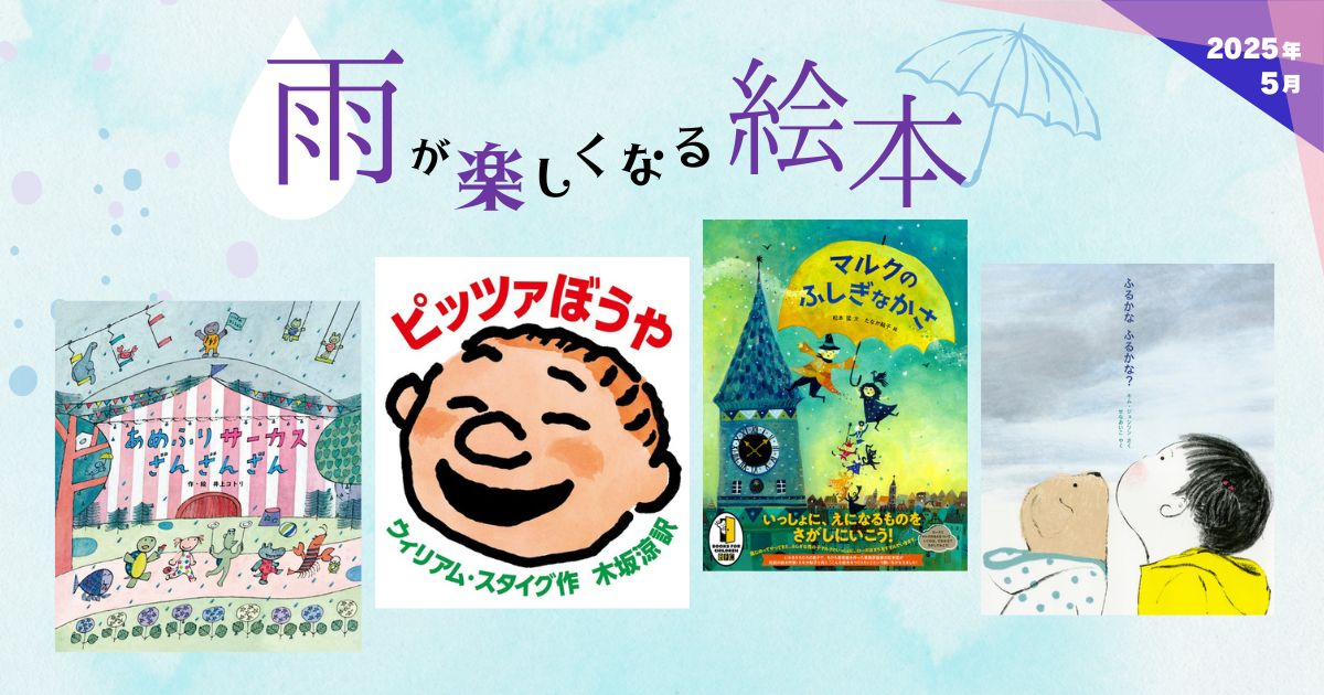 「ついに、つゆいりの おしらせで〜す。」 こんな軽快な一報が届いたら、なんだか梅雨がくるのも嬉しい気分になっちゃいますよね♪ 今週は雨の日を楽しむ絵本がたくさん! 2025年課題図書の特集ページも公開スタートです。気になる本を今のうちからチェックしてみてくださいね。 |
